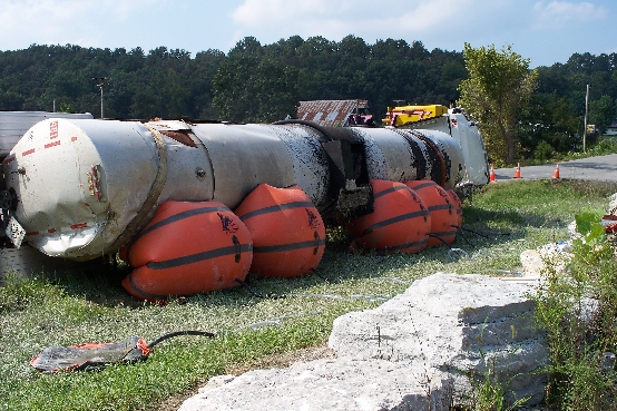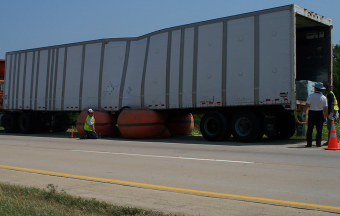 ERS has performed tractor-trailer recovery and up-righting operations for many years. Our air cushion recovery system is located in a self-contained trailer ready to mobilize to an accident location within minutes. Our certified operators have an extensive background in recovery and accident cleanup operations. Utilizing large air bags filled with low pressure compressed air allows a safe mechanism to upright loaded tractor-trailers, containers, and heavy equipment. This system creates a greater lifting area on loaded, overturned trailers providing the perfect mechanism to handle shock sensitive or fragile cargo. ERS has assisted towing companies and wrecker services during accidents and recovery situations.